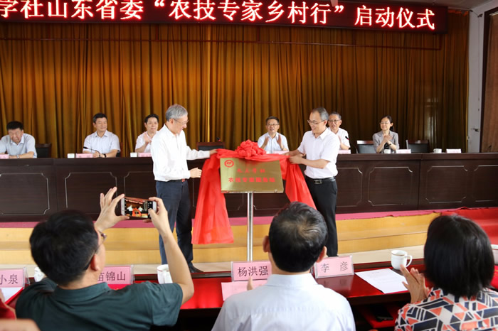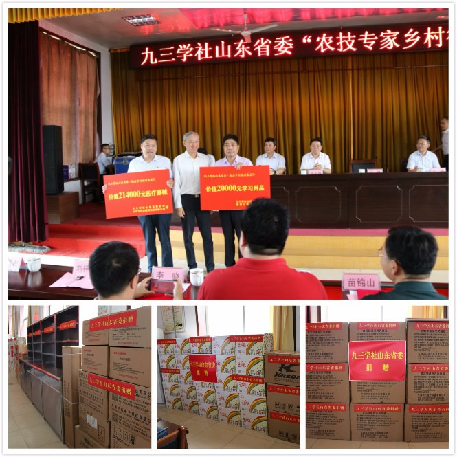 程林主委为“九三学社农技专家服务站”揭牌,并为捐赠医疗器材和学习文体用品的社员企业家、农技专家服务团社员专家颁发捐赠证书和聘书。他说,在我们九三学社七十多年的历史中,在民主与科学的旗帜下,始终聚集了一批有情怀的人,一批勇敢的传播了时代光芒的人。他们的努力与奋斗,促进了国家的政治文明,推动了社会的广泛进步。今天的活动是对我们自身责任的再一次提醒。今年5月份,九三学社山东省委组织专家在张家坡镇调研发现,当地适度规模经营尚未形成,种养结合、农业废弃物循环利用等可持续发展模式还没有得到有效普及,社省委决定聚焦当地的发展需求,充分发挥九三学社人才优势,开展“九三学社农技专家乡村行”活动。我们选出了社内包括长江学者和二级教授在内的8名农业专家,组建了九三学社农技专家服务团;我们还要在这里设立专家服务站,持续为乡亲们提供专业技术服务。希望我们的专家将农业先进技术传播到基层、传授给农民,使我们的农业技术成果转化为生产力,成为老百姓脱贫致富的科技推动力。我们希望能利用科技的力量,提供一些帮助,也传递我们对社会的关注、对善良的坚持和对美好生活的向往。