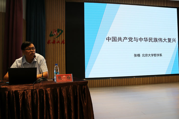 会议邀请北京大学哲学系张梧教授作了题为《中国共产党与中华民族伟大复兴》的报告。张教授从“组织起来、建构国家”是民族复兴的首要课题;辛亥革命与共和危机折射出国家建构的复杂困境;中共创建是中华民族伟大复兴的真正起点;全面抗战是民族复兴与中共转型的历史枢纽;国共竞争、中共建国是民族复兴的历史抉择;中国特色社会主义是民族复兴的必由之路等六个方面,勾勒了中国共产党引领中国人民实现中华民族伟大复兴的探索历程,深刻论述了“只有共产党才能救中国,只有社会主义才能发展中国”,使与会同志深刻认识到中国共产党始终以“为中国人民谋幸福、为中华民族谋复兴”的初心,进一步加深了对中国共产党的政治认同。同时,张教授旁征博引,幽默风趣,深入浅出,把一堂政治性很强的课讲得妙趣横生,引起了大家强烈共鸣,赢得了在场听众的热烈掌声。 来自社省委思想建设研究中心的研究员,各社市委及省直属基层组织分管思想宣传工作的领导和业务骨干,以及泰安市九三学社的骨干社员等共计130余人参加会议。(社山东省委 陈建华) |