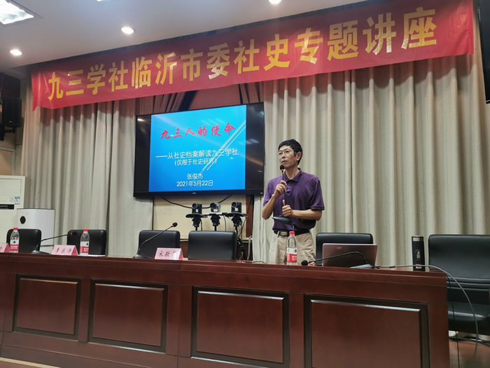 为扎实推进中共党史、九三学社社章社史学习教育,丰富“同心学党史,携手开新局”活动内容,5月22日上午,社临沂市委在兰山区政府会议中心举办社史专题讲座,邀请九三学社山东省思想建设研究中心研究员、青岛市委社史研究中心主任张俊杰作题为《九三人的使命—从社史档案解读九三学社》的报告。市政协副主席、九三学社临沂市委主委李宗涛,市委委员、兰山区基层委主委宋敬华,兰山区政协副主席潘瑜出席会议。