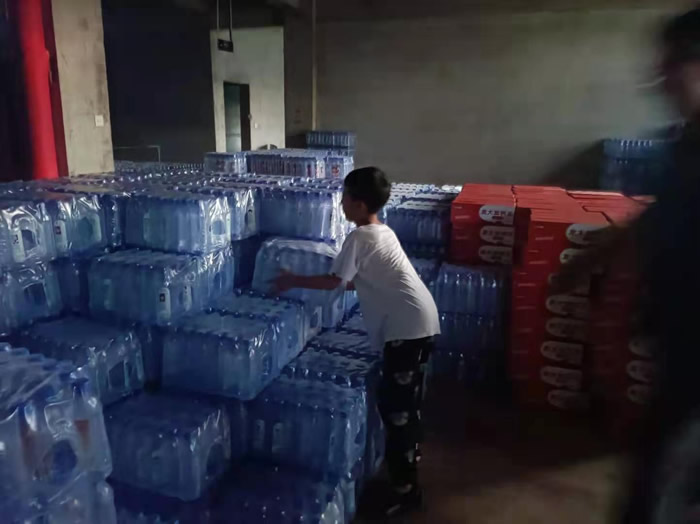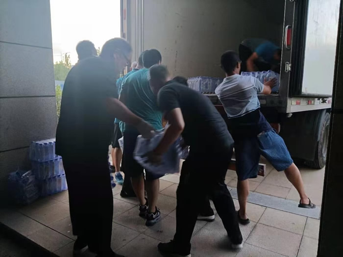 天翼中心紧急调配物资并联系车辆、组织人员搬运装车。23号晚上8:10装满救灾物资的货车出发驶向河南。