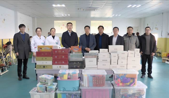11月23日,九三学社烟台市委联合海阳市支社社员们走进海阳市中医医院康复中心,为特殊儿童捐赠了价值近三万元的语言认知卡片、集体课程教具、儿童训练书籍等物品。