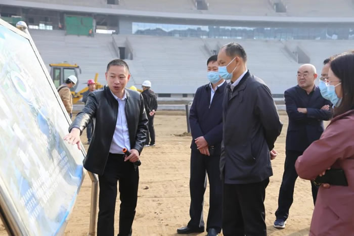 明铭一行先后到奎山体育中心、奎山山地公园、东港区体育中心、实验高中艺体馆、日照国际足球中心主场馆及训练基地项目现场,实地查看项目进展,听取筹备情况汇报,并围绕场馆建设、质量安全、功能定位和后续运营等方面,提出了一系列针对性的意见建议。