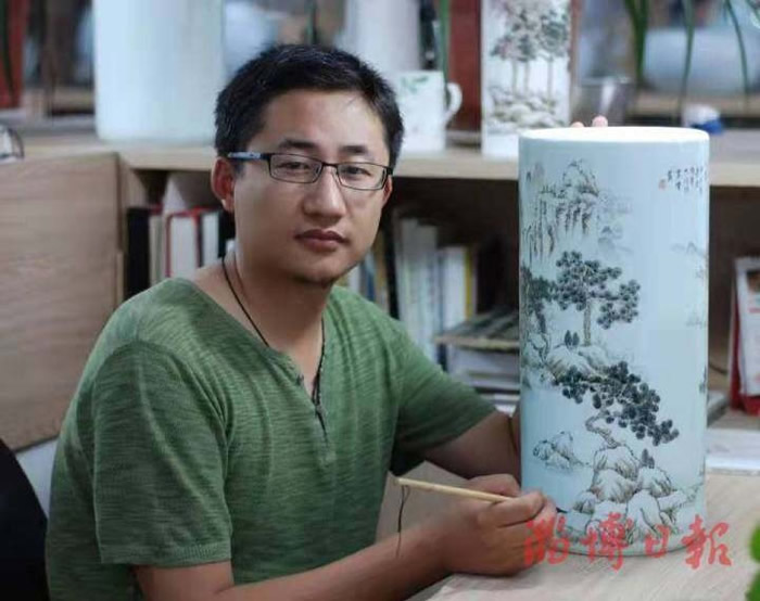 贾伟毕业于山东理工大学美术系国画专业,他从小喜欢画画,大学如愿以偿进入自己喜欢的专业深造学习,之后来到华光国瓷艺术中心,成为一名陶瓷彩绘设计师。当传统的国画山水遇上灵性内敛的陶瓷,贾伟仿佛找到了一片更为广阔澄澈的天空。