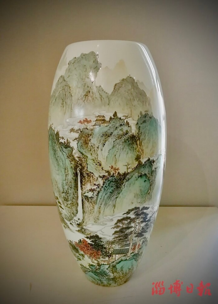 在九三学社社员、华光国瓷设计师贾伟眼中,山水会内化为自己的特殊语言,这语言会在自己的陶瓷彩绘作品上尽情绽放,用笔墨描绘山水之美,讲述山水故事。