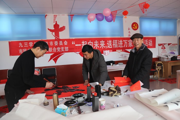 1月20日,天朗气清、阳光明媚,九三学社潍坊市委、市民主党派机关联合党支部一同组织部分书画家和九三社员,到省派“加强农村基层党组织建设”工作队市委统战部组员帮扶村——寒亭区杨家埠街道宋家双庙村,开展“一起向未来,送福进万家”慰问活动。