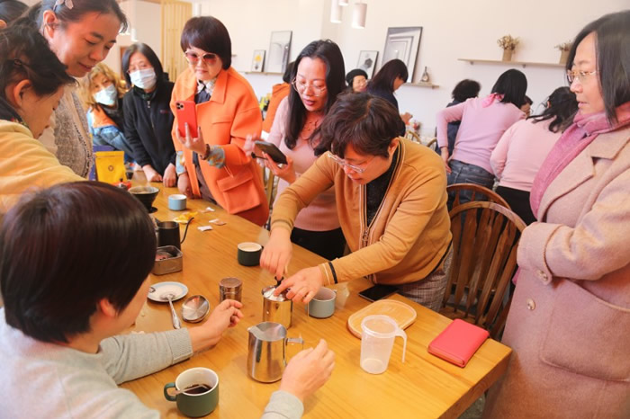 社员们体验实践基地“健康生活”类课程中的温馨烘焙、咖啡甜品项目,学习了咖啡制作流程,品味咖啡文化,体验咖啡礼仪。