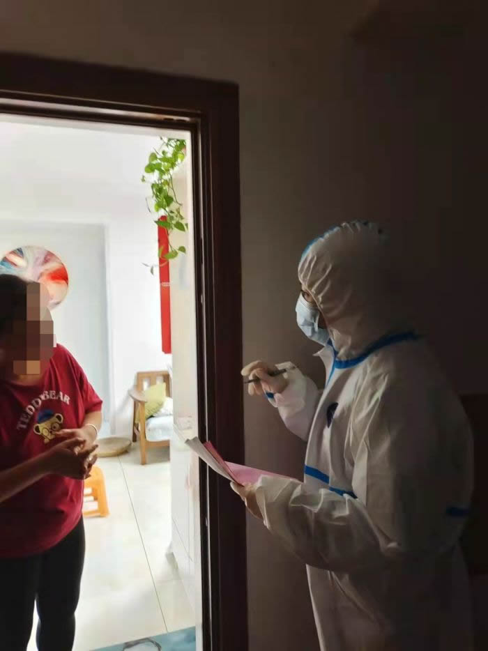 得知全区开展“扫地敲门”行动后,社员邓玮迅速加入志愿者队伍,穿上防护服,化身一名可爱的“大白”,手拿“扫地敲门行动信息摸排台账”,挨家挨户敲门了解住户信息。每天卯时出发,子时收工,真正做到不落一户、不漏一人、应检尽检。