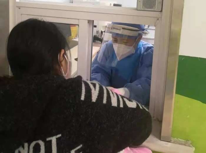 每天,从员工通道进入发热门诊的清洁更衣室领取防护服和N95口罩,严格按要求穿戴好后,依次进入缓冲一区、二区和检验室污染区,与同事进行完工作交接后,就开始了她一天的工作。接诊患者、打印核酸条码、采血条码,然后采血、做标本、发报告......忙碌的工作,让她有时连水都顾不上喝一口,但她始终坚持着,从来没有抱怨过,喊过一声累。如果赶上了夜班,在不忙的时候也可以赶紧休息会,但也十分警醒,拿着手机随时准备呼叫预检分诊处护士,接诊患者,采血、做标本、发报告——躺下迷糊一会——再起来采血、做标本、发报告……直到第二天早上8:00交班后才能结束工作。