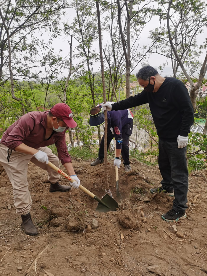 4月25日,九三学社威海市委员会组织社员20多人参加了中共威海市委统战部组织开展的“同心林”义务植树活动。