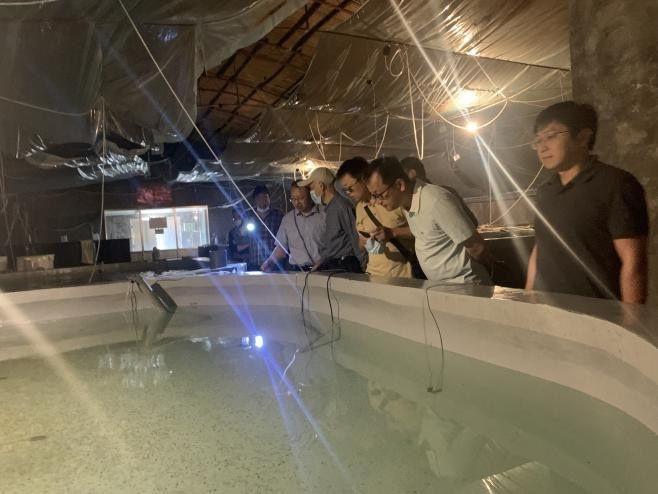 调研组成员参观了亲鱼保种车间、试验车间,听取了经营发展情况介绍,围绕育苗品种、数量、市场销售情况等与企业负责人进行了交流,并就海洋牧场产业化高质量发展、网箱养殖、放流品种、市场需求等问题进行了座谈研讨。