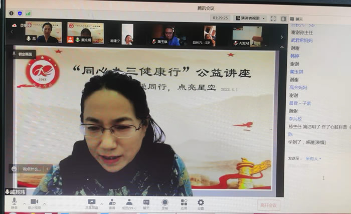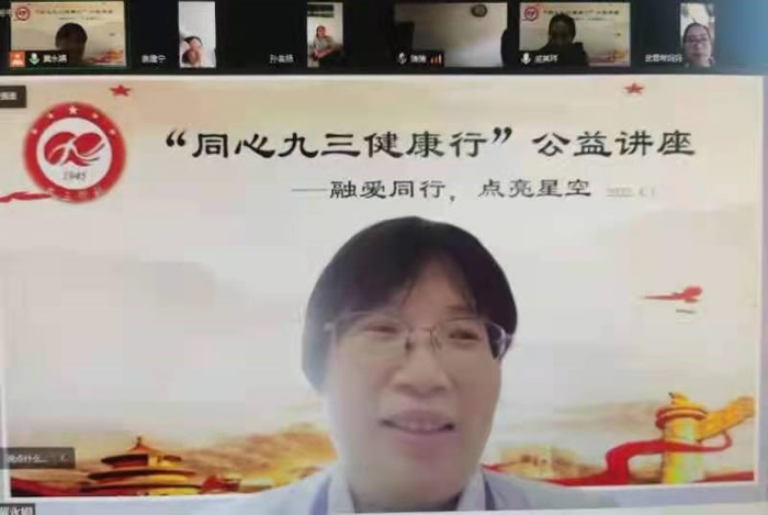 九三学社青岛市委会卫生专委会主任、青岛大学附属医院崂山院区心脏超声科主任、副主任医师孙品,青岛妇幼计生中心副主任、妇科专家、主任医师戚其玮,青岛妇女儿童医院心理科副主任医师冀永娟等3名社员,围绕“自闭症家长如何关爱自身健康,得了高血压怎么办?”“头胎自闭症妇女再生育怎么办?”“自闭症儿童不开口怎么办?”等主题,用通俗易懂的语言,丰富细致的PPT内容,或简单直白,或风趣幽默,生动详实地讲解了心血管健康、二胎生殖健康及自闭症语言训练等系列知识,进行了一场有温度、有深度、有广度的自闭症专业知识及身心健康线上公益科普知识讲座。