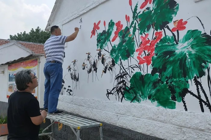 6月27日,九三学社淄博书画院院长、淄川区基层委主委、淄川区美术家协会主席张路华,九三学社淄博市委办公室主任马健组织九三学社淄博书画院和淄川区美术家协会多名文化志愿者发挥专业特长到源泉镇黄台村,以文化建设形式助力乡村振兴,用画笔绘制出一系列具有乡村独特韵味的文化墙。