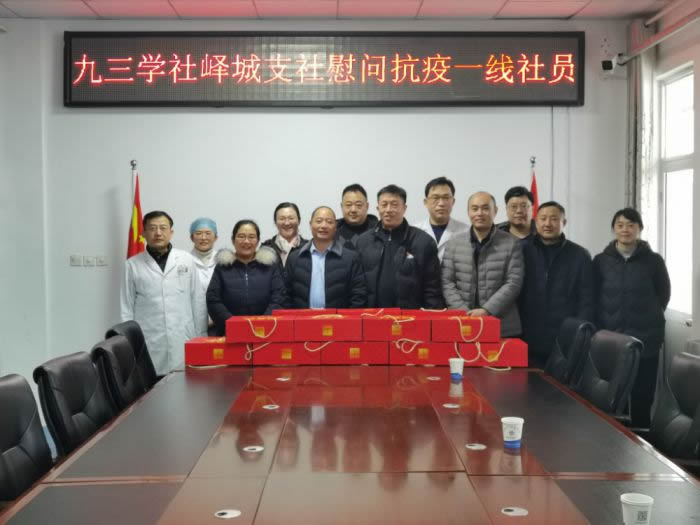 1月19日,九三学社峄城区支社主委杨传宏,峄城区支社原主委、区政协副主席张敬银带领支社班子成员,到峄城区人民医院慰问坚守在疫情防控一线的九三学社社员。