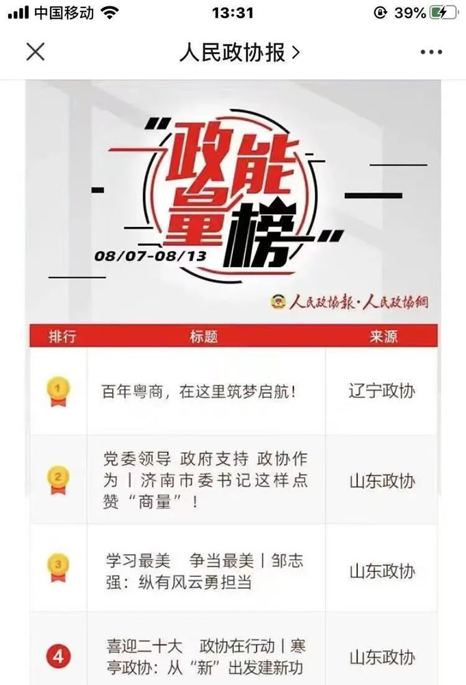 近日,山东省政协发布首届“最美政协人”名单,全省30名各级政协委员荣获首届“最美政协人”称号,另有18名委员被评为首届“最美政协人”提名人选(权威发布!全省政协系统首届“最美政协人”名单!)。2022年3月,省政协组织了首届“最美政协人”推宣活动,经过组织推荐、初选提名、集中展示、遴选确定等环节,12月20日省政协十二届五十次主席会议研究决定了获奖名单。
