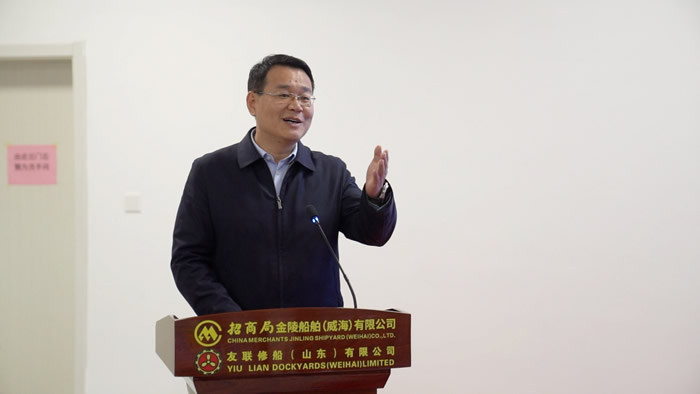招商局金陵船舶(威海)有限公司副总经理刘鑫男表示,今年是崮山镇企业沙龙创办的第三个年头,此次携手九三学社威海市委会和市贸促会来到招商金陵,体现了政府部门、民主党派走入企业、服务企业的态度和决心,此次成立园区产业链党建联盟,招商金陵将充分发挥链主型企业的作用,与上下游企业共同打造“共赢、安全”的价值链,形成崮山镇强有力的产业集群效应。