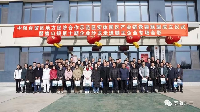 为发挥九三学社科技人才资源优势,以实际行动助力镇域企业创新发展,2月24日上午,九三学社威海市委会联合威海经济技术开发区崮山镇党委政府、威海市贸促会走进市级链主型企业招商局金陵船舶(威海)有限公司,举办中韩自贸区地方经济合作示范区实体园区产业链党建联盟成立仪式暨崮山镇第十期企业沙龙。市政协副主席、九三学社威海市委会主委朱文娟带领专家智库成员和社员企业代表、院校代表等一行16人参加了本次活动。RCEP服务中心驻在机构负责人,崮山镇党委、政府相关班子成员,崮山镇规上企业、制造业企业、外贸企业负责人共计80余人参加活动。九三学社威海市委会副主委兼秘书长曲兴、副主委高见参加活动。