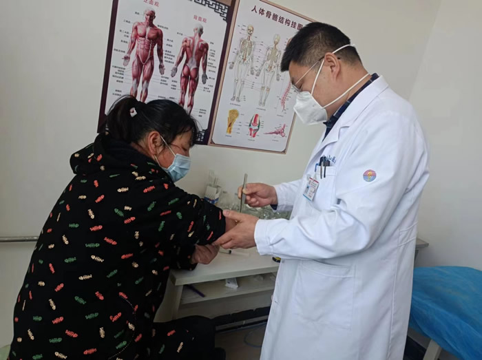 九三学社烟台市委员会常委、医疗卫生专委会主任、烟台山医院手外一科副主任付胜强,九三学社烟台市委员会委员、医疗卫生专委会副主任、烟台中西医肛肠医院常务副院长柳玲参加活动。两位专家不顾值夜班的疲惫,一大早来到卫生院开展义诊教学活动。他们在细心为群众诊治的同时,对基层医生进行了治疗胃肠和骨科疾病业务指导。活动中,九三学社烟台市委员会专家还与张格庄镇中心卫生院围绕下一步工作开展了探讨交流。