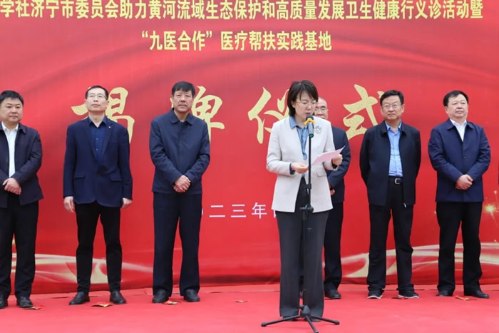 九三学社济宁市委员会主委、济宁市医疗保障局局长孙颖做了讲话,她表示,本次活动是九三学社市委会贯彻落实黄河流域生态保护和高质量发展战略的具体体现,九三学社市委会长期以来十分重视开展社会服务工作,“九医合作”医疗帮扶活动开始于2004年,旨在通过济宁九三学社医疗卫生优势资源与镇街卫生院的有效对接,推动基层医院医疗卫生水平整体提升。今年是全面贯彻落实中共二十大精神的开局之年,也是中共中央“五一口号”发布75周年,九三学社市委会将认真履职尽责,着力提升社会服务水平,在黄河滩区持续深入开展义诊和健康帮扶活动,助力缓解黄河滩区群众“看病难”“看名医难”问题,为推动中国式现代化“济宁实践”迈出坚实步伐、全面开创新时代社会主义现代化强市建设新局面作出更大贡献。