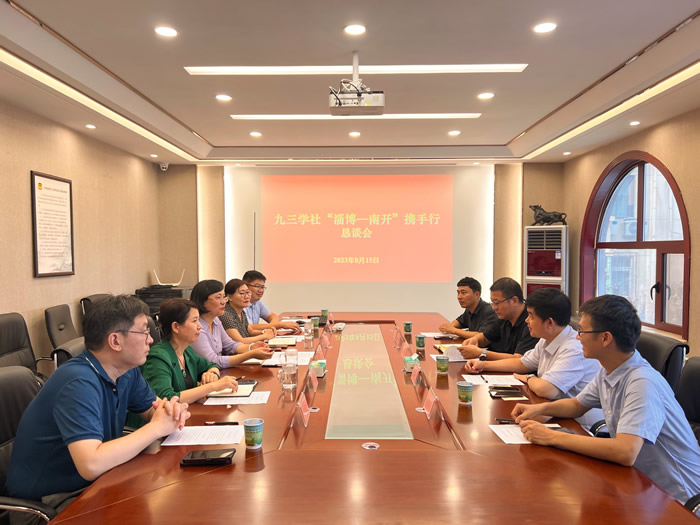 8月15日,九三学社“淄博—南开”携手行恳谈会召开。九三学社淄博市委会主委李寅萍、副主委兼秘书长刘双、副主委李逢春,九三学社南开大学基层委员会主委刘波、副主委宫晓利等参加交流座谈。