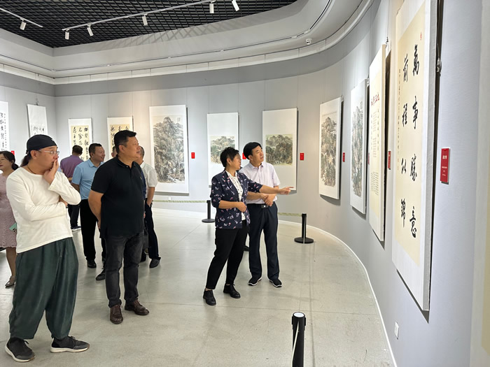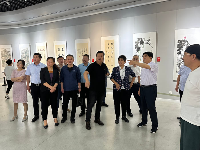 仪式结束后,与会人员参观了“凝心铸魂强根基、团结奋进新征程”主题教育主题书画展。新成立的九三学社泰安书画院成员共有30人,其中中国美术家协会、中国书法家协会会员8人;山东省美术家协会、山东省书法家协会会员11人。本次展览作品均出自九三学社泰安书画院艺术家之手,主题突出,题材多样,风格各异,兼具政治性、艺术性、群众性,把对党和人民的深厚感情倾注在生花妙笔之端,把新时代的奋进精神书写在尺幅天地之间,生动体现了九三学社社员与中国共产党同心协力共筑中国梦的责任担当,寄托着对登高望远,活力九三的美好祝愿。