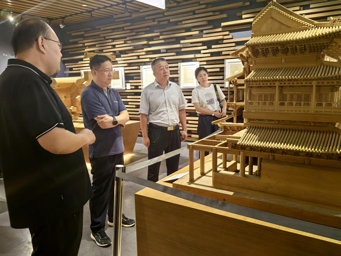 调研组一行考察了曲阜三孔和曲阜市古建筑博物馆。古建筑博物馆以“成器之道、文枢之光”为主题,聚焦曲阜明清官式古建筑特色,用中国古建筑的传统材料+传统工具,展示传统工艺;通过建筑形制的演变,展现周文化、鲁文化及儒家文化对曲阜古建筑发展的深远影响。在孔庙大成门彩绘修缮现场,调研组一行听取了曲阜市三孔古建筑工程管理处副主任林丙焕关于文物建筑预防性保护、古建筑维修保养、古建筑彩画研究性保护等情况的详细介绍。