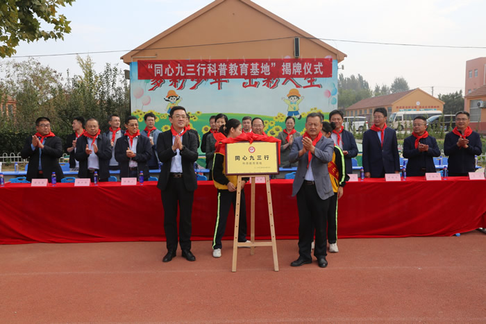 青岛市、陇南市等各方领导共同为“同心九三行科普教育基地”揭牌。