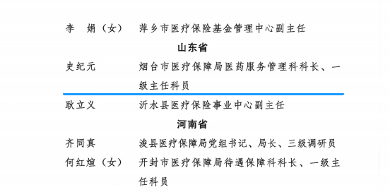 烟台市九三学社社员史纪元荣获全国医疗保障系统先进个人荣誉称号