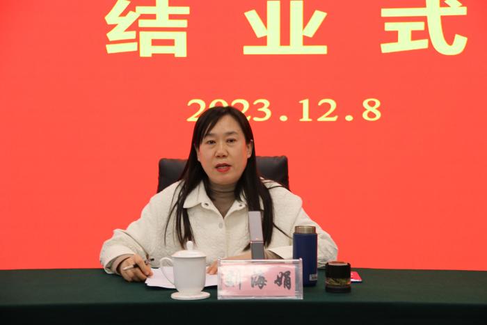 结业式上,刘海娟作总结讲话并对下一步做好参政议政及思想宣传工作提出三点要求。一是要把学习成果转化为坚定的政治立场,把参政议政和宣传工作与思想政治建设、凝聚共识有机结合起来,不断提高服务大局的能力和水平,持之以恒增强工作本领。二是要把学习成果转化为强烈的责任担当,切实提高全体社员加强和改进参政议政工作的使命感、责任感和紧迫感,进一步坚定做好参政议政工作的信心和决心。三是要把学习成果转化为过硬的履职本领,重点围绕加快推动科技自立自强、深入打造乡村振兴齐鲁样板、黄河流域生态保护以及民生热点问题等开展调研,努力提出前瞻性、综合性和可行性的对策建议。同时充分发挥各级组织的平台和纽带作用,及时交流和共享信息、资源、成果,推动形成上下联动、左右配合、优势互补、资源共享、形成合力的履职机制。