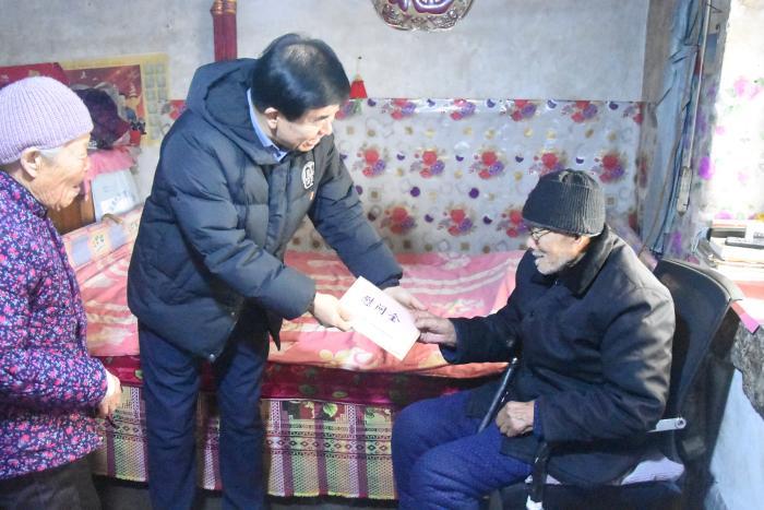 1月31日,九三学社山东省委会赴沂源县张家坡镇、悦庄镇开展走访慰问活动。社省委会办公室主任宋广伦,淄博市乡村振兴局副局长宋作华,社淄博市委会办公室主任马健,沂源县县委副书记(挂职)裴娜、县委统战部副部长韩启龙,张家坡镇、悦庄镇有关领导参加活动。