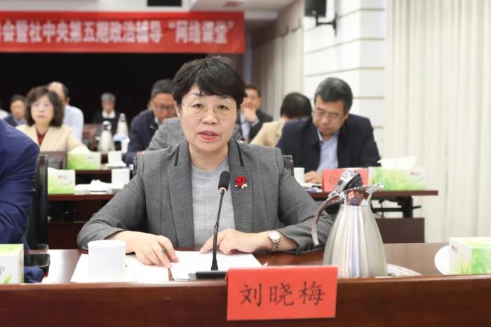 刘晓梅从会议基本情况和主要特点、会议关注的主要问题、九三学社履职情况三方面传达了政协会议精神。她着重传达了习近平总书记在看望参加政协会议的民革、科技界、资源环境界委员并参加联组会时的重要讲话精神,传达了中共中央政治局常委、中央纪律检查委员会书记李希参加九三学社、无党派人士界委员联组会议时的讲话精神。她说,委员们高度评价李强总理所作的政府工作报告以及王沪宁主席所作的常委会工作报告,对国务院组织法修订草案以及“两高”工作报告等也给予了充分肯定;高度关注推进中国式现代化、加快发展新质生产力、推动中华文化传承发展、增进民生福祉、建设美丽中国、全面深化改革和推进高水平对外开放等热点问题。她表示,会议期间,来自九三学社的政协委员以高度的政治责任感、饱满的政治热情和昂扬的精神状态,共商发展大计,共谋惠民之策,充分彰显了九三学社社员担当作为的履职风采。