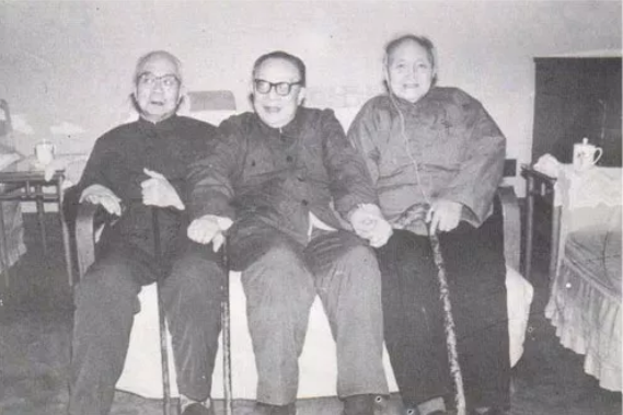 1983年 3月 29日,『三·二九』斗争三十五周年,当年在北大民主广场发表演讲的许德珩(中)、袁翰青(左)、樊弘(右)三教授合影留念