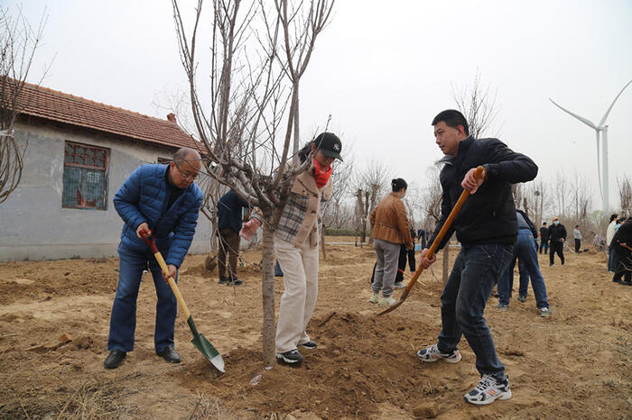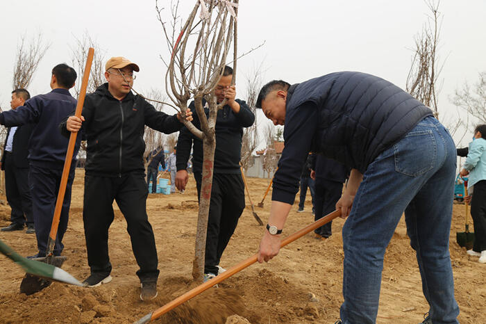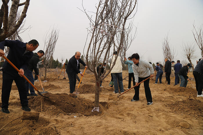植树现场,在技术人员的耐心指导下,大家热情高涨、干劲十足,分工协作、密切配合,放苗入坑、挥锹铲土、扶正踩实、浇水灌溉,每一道工序都做得认真细致,现场涌现出繁忙而有序的景象。经过一番辛勤劳动,一株株树苗迎风挺立,孕育着勃勃生机,焕发出绿色希望。