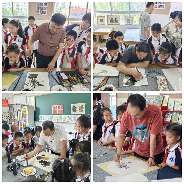 书画交流现场,书画家社员耐心指导学生握笔、运笔技巧,现场创作一幅幅精美的书画作品,让学生们近距离感受传统文化的魅力。