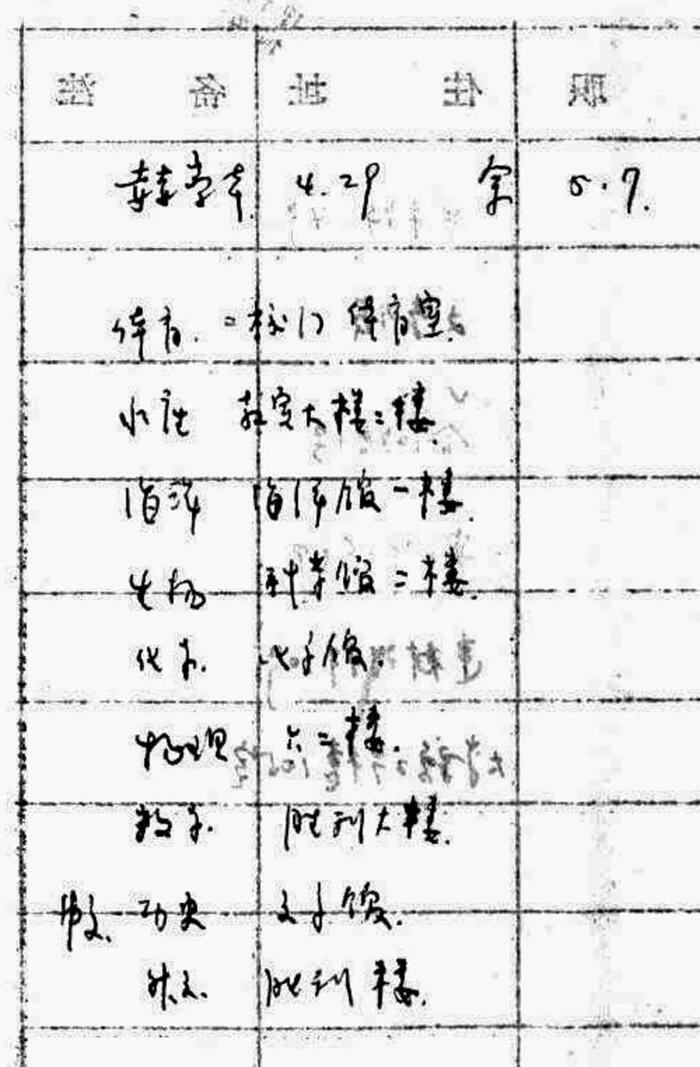 图为山东大学支社活动小组的活动场所列表。原件在青岛市档案馆。