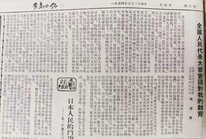 图为1954年10月24日《青岛日报》第三版截图,原件在青岛市图书馆。