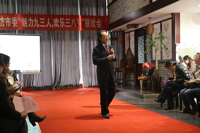3月6日,九三学社潍坊市委“魅力九三人,欢乐三八节” 联欢会在潍坊市人民广场国际艺术社区祺玉生活馆举办。潍坊市政协副主席、九三学社潍坊市委主委李传恒出席,副主委赵同祥代表社市委致贺辞,副主委李莉致答谢辞,各支社主委及女社员70余人参加活动。