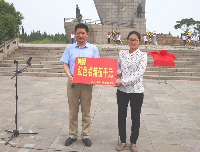 仪式上,九三学社微山县支社主委张尊磊代表支社为微山县政德教育基地图书馆捐赠了价值5000元的经典红色革命书籍,旨在助力县政德教育基地建设,为更好传承红色基因略尽绵薄之力。参加启动仪式的社员与大家一同瞻仰了铁道游击队纪念碑,参观了革命历史展览馆,重温革命历程,接受了红色革命教育。