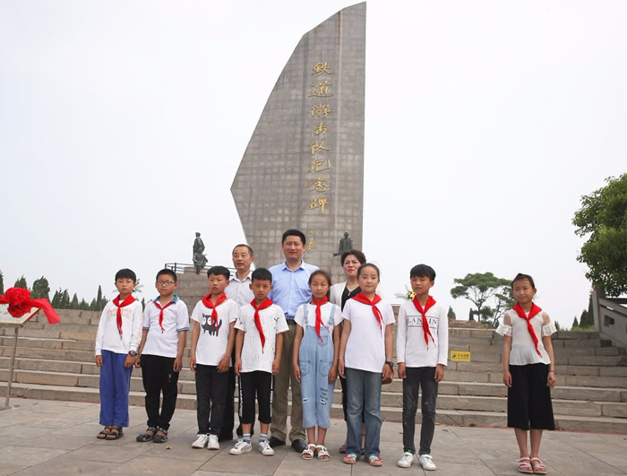 为弘扬中华优秀传统文化,传承红色革命基因,积极培育和践行社会主义核心价值观,深入推进青少年思想道德建设,儿童节前夕,由中共微山县委宣传部和组织部老干部局、九三学社微山县支社、县教体局、县关工委、共青团县委等共同发起,在红色革命教育基地——微山岛铁道游击队纪念园举办了“传承红色基因 争做时代新人”主题学习教育活动。首先少先队员代表向铁道游击队纪念碑敬献花篮、全体与会人员向革命烈士默哀一分钟,接着奏唱少先队队歌、少先队员代表宣读倡议书,最后县领导为青少年红色革命教育基地揭牌。