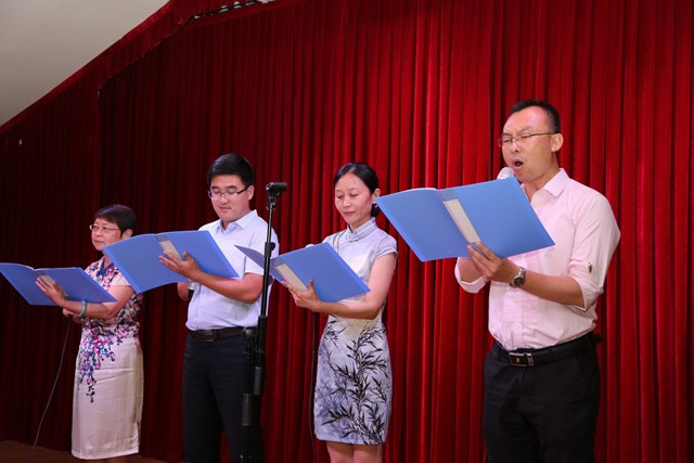 在接下来的乐读会上,社员代表满怀深情地诵读了《祖国啊,我亲爱的祖国》、《大哉邓稼先》、《同心共筑中国梦》等诗歌,咏唱、演奏了传统名曲,展现了九三学社青岛市委坚守爱国、民主、科学的优良传统,以及老一辈“九三人”的家国情怀和崇高风范。