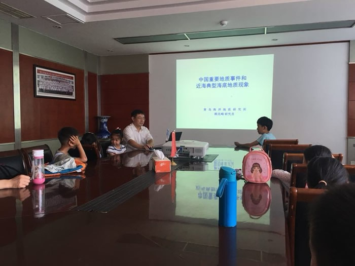 6月30日,九三学社青岛市市南区委员会在青岛海洋地质研究所科技馆,为青岛智丰播音艺术学校小学生们进行了地质讲解,并做“中国重要地质事件与近海海底地质现象”科普讲座。
