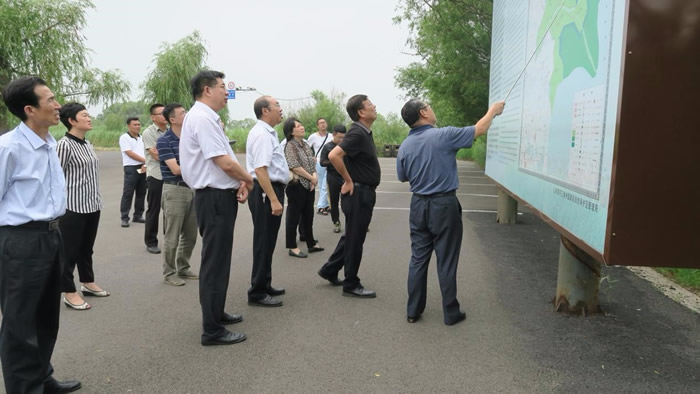 27日,调研组前往东营黄河三角洲自然保护区湿地进行实地考察。东营市自然保护区管理局的工作人员介绍了当前黄河三角洲湿地保护和修复模式,调研组一行就盐碱地的治理、调节生态平衡的措施等问题进行了深入探讨。