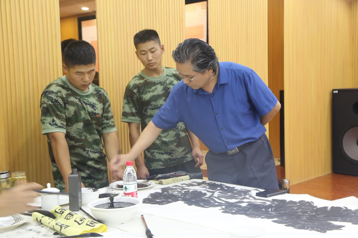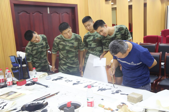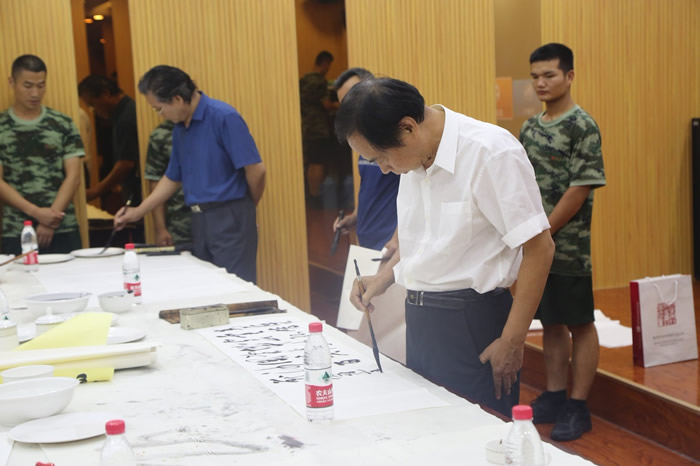 书画家们在活动现场为部队创作了多幅主题鲜明、内涵丰富、立意积极向上的精美书法作品,为炎炎夏日中仍然坚守岗位的消防官兵送去一丝清凉,体现了深深的军民鱼水情谊。现场观赏的消防官兵们深刻感受到了中国传统文化的独特魅力。(九三学社济宁市委 吕源)