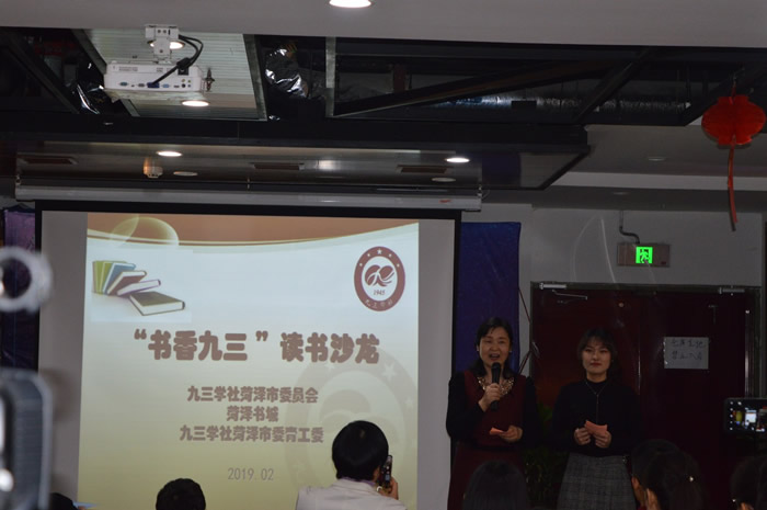 2月17日,九三学社菏泽市委联合菏泽书城举办“书香九三”读书沙龙活动。九三学社菏泽市委主委、菏泽市副市长侯婕参加活动并讲话,九三学社菏泽市委副主委张传新一同参加活动。12名九三学社社员及家属、朋友参加了“书香九三”读书沙龙活动,现场分享了《滕王阁序》、《苏东坡传》、《致橡树》、《西游记》、《不列颠图解科学丛书》、《面朝大海春暖花开》等优秀文章和书籍,从中国古典文学到现代文学,从中国文学作品到英语学习和拼读,从自然科学到社会科学,大家分享了自己的读书心得和学习技巧,带领大家领略了文学艺术经典魅力和科学技术之美,50多名读书爱好者现场聆听分享,书城的其他读书爱好者也围拢在活动现场周围聆听。