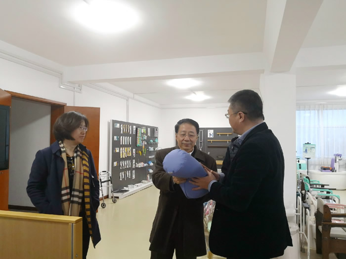 座谈结束后,丁冬董事长陪同赵铁军主委一行参观了老年用品展示厅。丁冬董事长演示了行动辅助类、卫浴及卧室辅助类、生活饮食辅助类老年产品。赵铁军主委在赞叹国外产品的先进理念和技术同时,对青岛鸿泰元医疗科技有限公司经过多年试验、积极创新和自主研发的POE弹性体静态分压床垫产生了浓厚的兴趣,窗外寒风冷雨挡不住室内热烈的交流讨论。赵铁军主委对丁冬董事长提出希望,民营企业要坚持正确政治方向,促进企业健康发展,要加强科技投入和高科技产品研发,注意与新技术相结合,闯出自己的路子,要牢记习近平总书记嘱托,加强自我学习、自我教育、自我提升,当好实体经济的坚守者、高质量发展的引领者、社会责任的担当者,做有立场、善创新、担责任、高价值的新时代企业家。