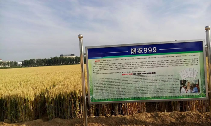 烟农999(烟农99102)于2011年通过了山东省品种审定委员会审定(审定编号:鲁农审2011032号)。2016年通过了国家品种审定委员会审定(审定编号:2016012)。2019年通过了山西省认定。这是烟台农科院成立以来唯一通过国家黄淮南片审定的优质高产小麦品种。目前在山东、安徽、江苏、河南、陕西、山西大面积推广种植中。其主要优点是:
