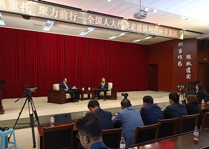 除了传达两会精神外,作为山东国瓷功能材料公司副总经理,司留启代表向大家介绍了公司一步步发展壮大、“从战斗中学习战斗”的创业史,讲述了自己从一名知识分子到上市公司联合创始人,再到全国人大代表的心路历程。