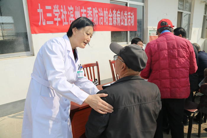 九三学社滨州市委通过设立咨询台、悬挂横幅、发放宣传资料和手册等形式,向广大群众和市民宣传预防、治疗帕金森病的相关知识。