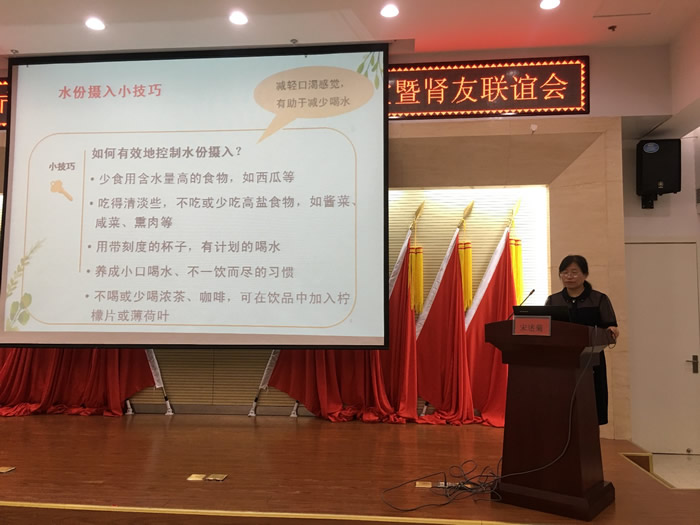 九三学社菏泽市委市直七支社主委、市中医院肾病科主任宋述菊,肾病科主治医师宋凯,透析室护士长房巧梅分别作了题为《血液透析病人的饮食调理》、《高品质透析》和《血液灌流和血液滤过的优势》等讲座,针对广大肾友的身体状况和治疗过程中遇到的实际情况,详细讲解了患者治疗、日常护理和生活中应注意的事项,获得了患者和家属的阵阵掌声,进一步坚定了肾病患者的治疗信心,也为患者的早日康复注入正能量。