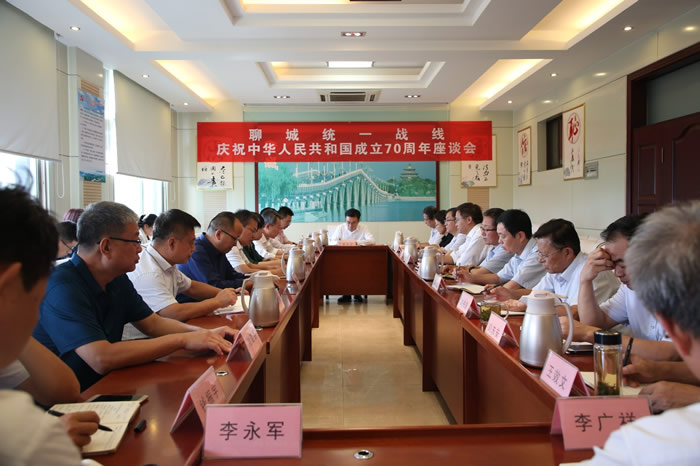 2019年9月30日下午,聊城市举办统一战线庆祝中华人民共和国成立70周年座谈会。中共聊城市委常委、统战部长秦存华出席会议并讲话;中共聊城市委统战部分管日常工作的杨达副部长主持会议;聊城市政协副主席、九三学社聊城市委主委黄勇代表各民主党派发言。
