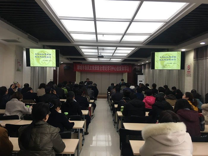 12月14日,中共聊城市委统战部主办、九三学社聊城市委承办的第六期聊城市各民主党派市委会班子成员集中理论学习,在聊城市技师学校培训中心多功能会议室举行。原市政协副主席、聊城大学东昌学院院长、九三学社聊城市委原主委潘延红教授做了《不忘初心愿担当 民主科学促前行》的主题讲座,九三学社聊城市委副主委刘继光同志主持学习活动。